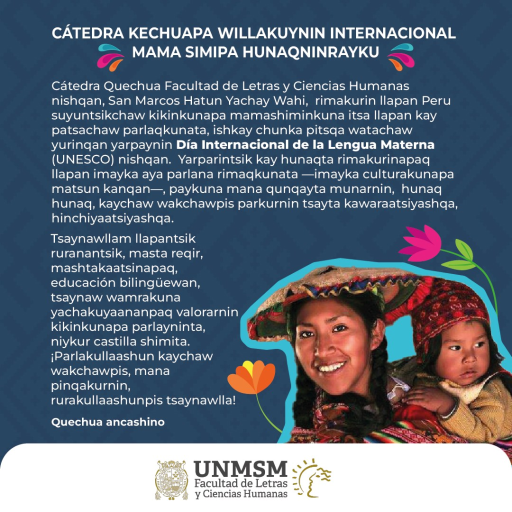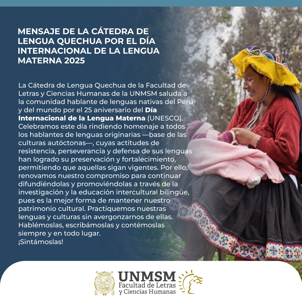 - »Mensaje de la Cátedra de Lengua Quechua (UNMSM) por el Día de las Lenguas Originarias 2025: