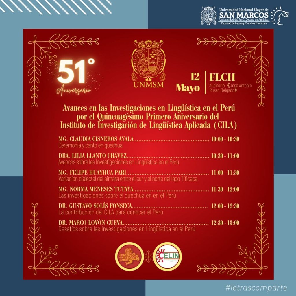 noticias51 Aniversario : Avances en las Investigaciones en Lingüística en el Perú por el Quincuagésimo Primero Aniversario del Instituto de Investigación CILA