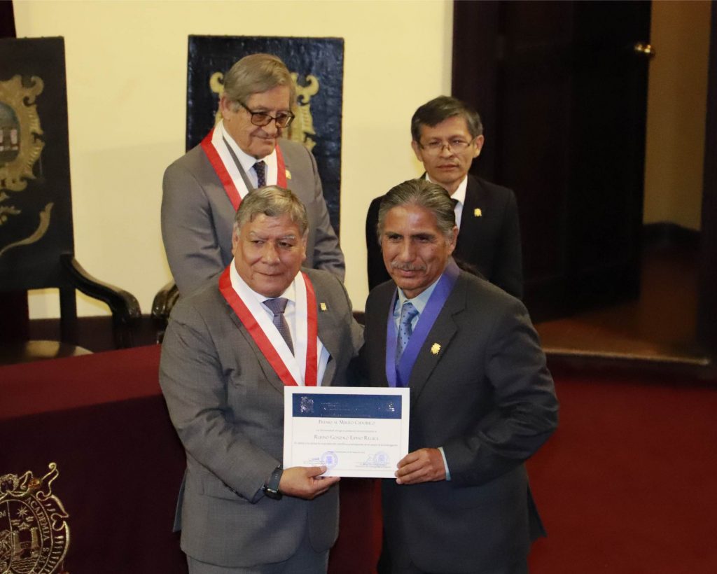En el evento “Premiación a la Investigación UNMSM 2019” se reconoció como Mejor Grupo de Investigación en Humanidades al Grupo de Investigación Estudios Andinos de Interculturalidad: Quechua y Aymara – ESANDINO, que tiene como coordinador al Dr. Mauro Mamani.