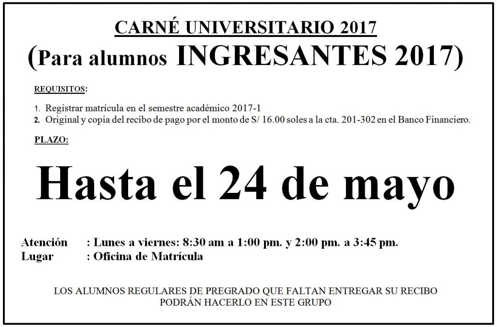 Requisitos para el carné universitario de ingresantes 2017 de la Facultad de Letras y Ciencias Humanas. Artículo anterior Artículo siguiente Los comentarios están cerrados.