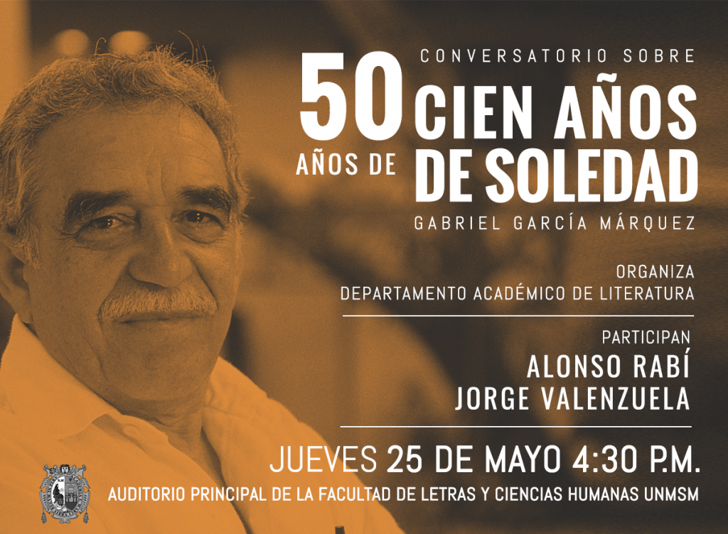 El Departamento Académico de Literatura invita al conversatorio que se realizará con motivo de cumplirse los 50 años desde que Gabriel García Márquez escribió Cien años de soledad, su obra más representativa.