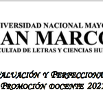 Compartir: Anterior Listado de Docentes que se han presentado al proceso no presencial (virtual) de Promoción Docente Siguiente Resultados del Proceso de Nombramiento de Docentes Contratados de la UNMSM, en el marco de la Ley N.° 31349 y, de conformidad a la R.R. N.° 013555-2021-R/UNMSM del 11 de diciembre del 2021: También te puede interesar noticias 9 mayo, 2017 A PROPÓSITO DE REGINA: LOS INVESTIGADORES DE LA FACULTAD DE LETRAS Y CIENCIAS HUMANAS Compartimos con ustedes el artículo sobre los investigadores de la Facultad de Letras y Ciencias Humanas, publicado en... Leer más noticias 12 julio, 2021 COMUNICADO sobre Evaluación del Desempeño Docente por Estudiantes. Leer más noticias 24 marzo, 2017 Inscripciones en posgrado se amplían hasta el 4 de abril Leer más