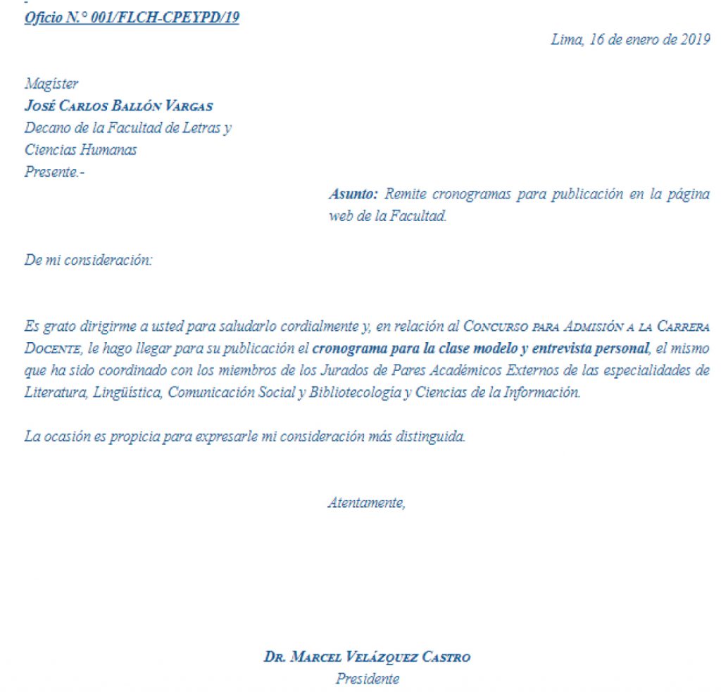 Cronograma para la clase modelo y entrevista personal – Literatura de Facultad de Letras y Ciencias Humanas, Universidad Nacional Mayor de San Marcos