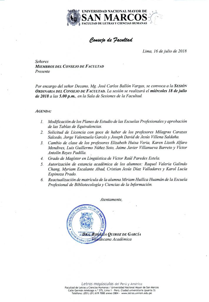 Habrá consejo de Facultad este miércoles 18 de julio de 2018