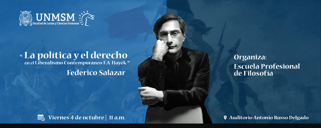 ¿Federico Salazar en Letras? Sí, el periodista estará en nuestra facultad para pasar un #ViernesFilosófico con nosotros. Esta vez viene con el tema «La política y el derecho en el Liberalismo Contemporáneo F. A. Hayek»