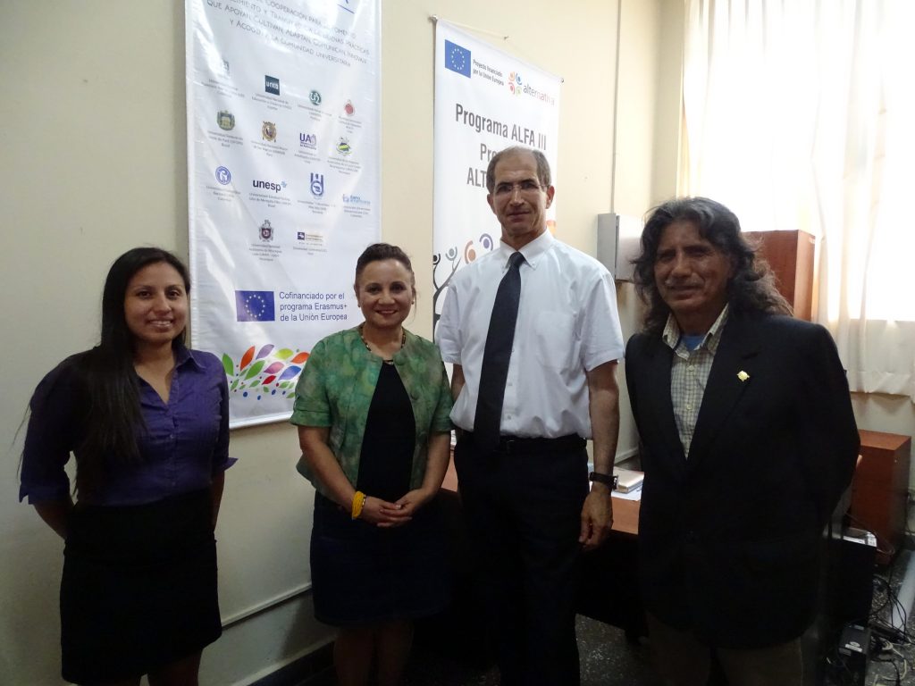 Estuvieron a cargo de recibir al importante invitado, el Vicedecano de Investigación y Posgrado de la FLCH, Dr. Gonzalo Espino Relucé, y la Mg. María Isabel Ginoccio Lainez Lozada, Coordinadora del proyecto ACACIA: Centros de cooperación para el fomento, fortalecimiento y transferencia de buenas prácticas que apoyan, cultivan, adaptan, comunican, innovan y acogen a la comunidad universitaria.