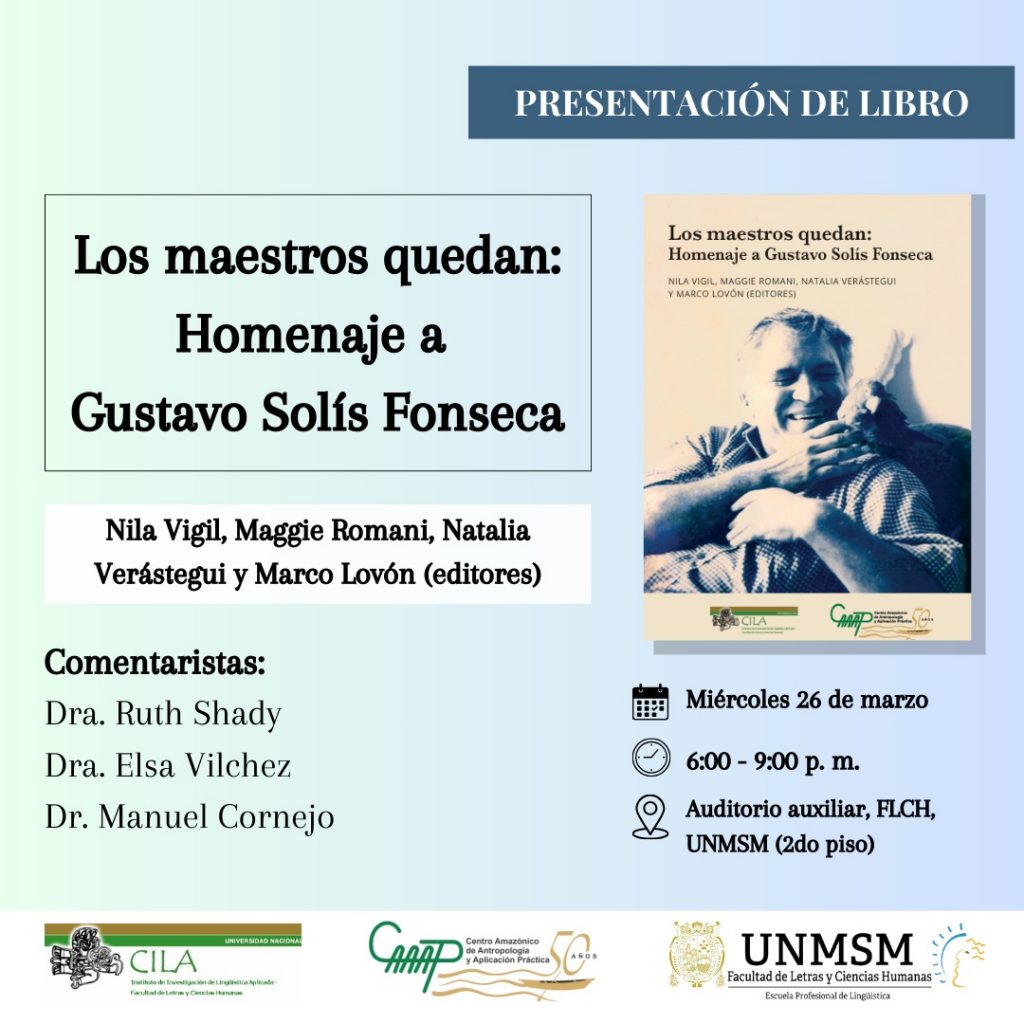 La Facultad de Letras y Ciencias Humanas invita a la comunidad académica y al público en general a la presentación del libro Los maestros quedan, una obra que rinde homenaje al legado del destacado lingüista Gustavo Solís Fonseca.
