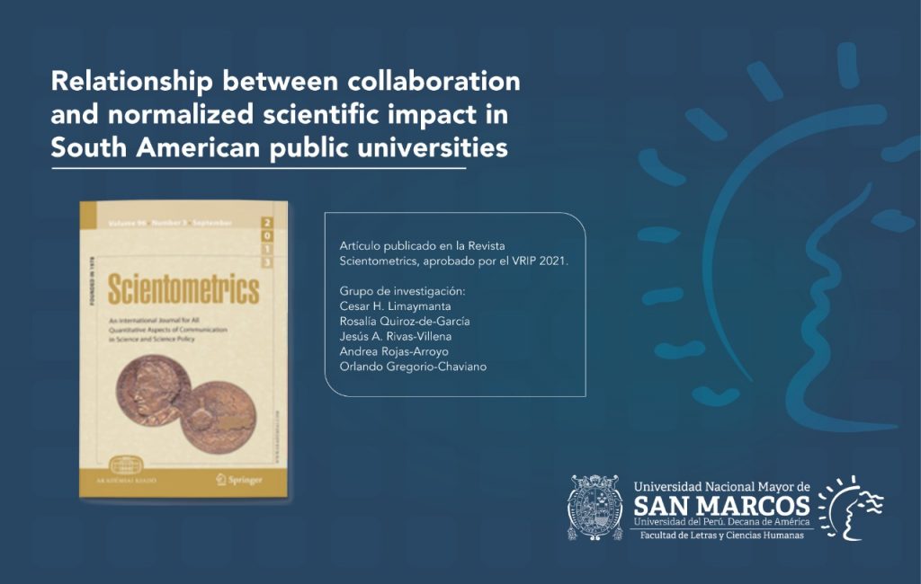 Artículo científico publicado en la fecha en la revista Scientometrics a cargo de un grupo de profesores y egresados miembros del grupo de investigación CIGETMEN de la Facultad de Letras y Ciencias Humanas – UNMSM. Se deriva del Proyecto de Investigación N° E21031331 (2021) aprobado por el VRIP.