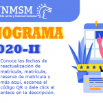 Sigue tus trámites aquí. Compartir: Anterior Cronograma 2020-II Siguiente Convocatoria de Docentes Extraordinarios Expertos También te puede interesar noticias 2 agosto, 2018 Cronograma del Concurso Público para Contrato Docente-Semestre 2018 II Leer más noticias 2 octubre, 2017 3 de octubre: Capacitación presencial: uso de la base de datos WILEY Estimados docentes y alumnos: Por encargo de la Dirección General de Bibliotecas y Publicaciones; y la Dirección del... Leer más noticias 10 abril, 2017 137 Aniversario del Natalicio de Julio C. Tello El Museo Nacional de Arqueología, Antropología e Historia del Perú invita al público en general, a la ceremonia... Leer más
