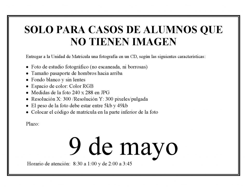 Solo para alumnos que no tienen imagen: plazo hasta el 9 de mayo