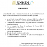 UNIVERSIDAD NACIONAL MAYOR DE SAN MARCOS Universidad del Perú, DECANA DE AMÉRICA COMUNICADO La Universidad Nacional...