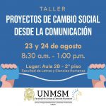 ÚLTIMOS PROCESOS – Rectificación de Matrícula – 2019-2 – Matrícula Extemporánea – 2019-2 ÚLTIMOS PROCESOS – Rectificación de Matrícula – 2019-2 – Matrícula Extemporánea – 2019-2 Compartir: Anterior TALLER GRATUITO - PROYECTOS DE CAMBIO SOCIAL DESDE LA COMUNICACIÓN. Siguiente Cronograma Actividades para Matrícula 2019-2 También te puede interesar noticias 22 enero, 2018 Debate Académico: Propuestas de Programas y Líneas de Investigación de la Facultad de Letras y Ciencias Humanas Lima, 20 de enero de 2018 El Vicedecanato de Investigación y Posgrado de la Facultad de Letras y Ciencias... Leer más noticias 23 noviembre, 2020 I Congreso Interdisciplinario de Estudios Andinos «Homenaje a Manuel Scorza» Descarga la programación AQUÍ Programa Congreso CIDEA by Imagen Institucional Facultad de Letras y CC. HH. on... Leer más noticias 6 diciembre, 2018 Aprueban en vía de regularización actividades académicas Pre Grado UNMSM Aprueban en vías de regularización, la ampliación del cronograma de actividades académicas 2018 de pregrado de la Universidad... Leer más