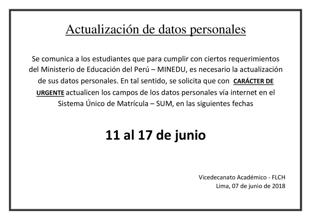 Urgente: actualización de los datos en el SUM