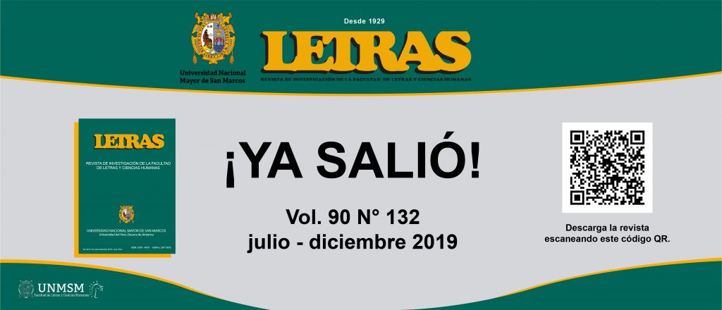 Nuestra prestigiosa revista «Letras» acaba de publicar su número 132, Volumen 90, correspondiente a Julio – diciembre 2019. El ejemplar virtual contiene artículos que divulgan el quehacer científico referido a las disciplinas de humanidades, vinculadas a los resultados de los proyectos de investigación, en el ámbito de los estudios humanísticos más importantes.