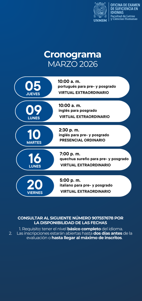 Correo electrónico:  examensuficiencia.flch@unmsm.edu.pe